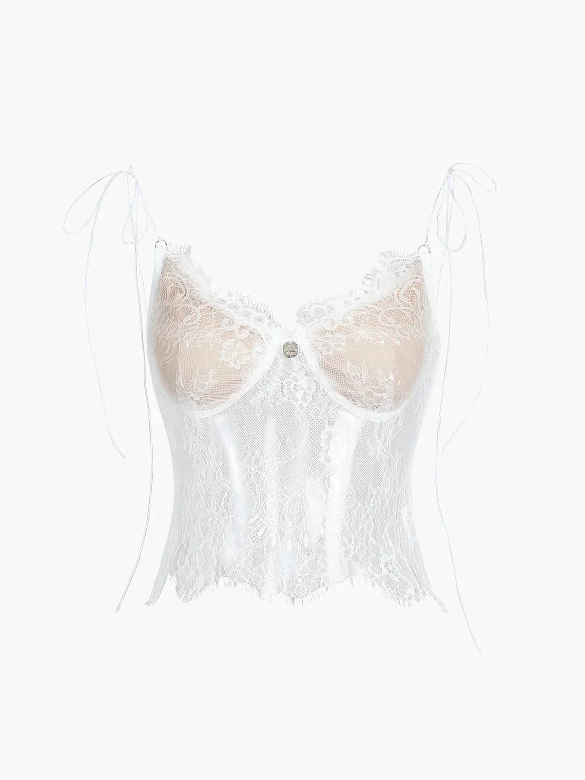 Women's lace bustier top with tied straps in corset style