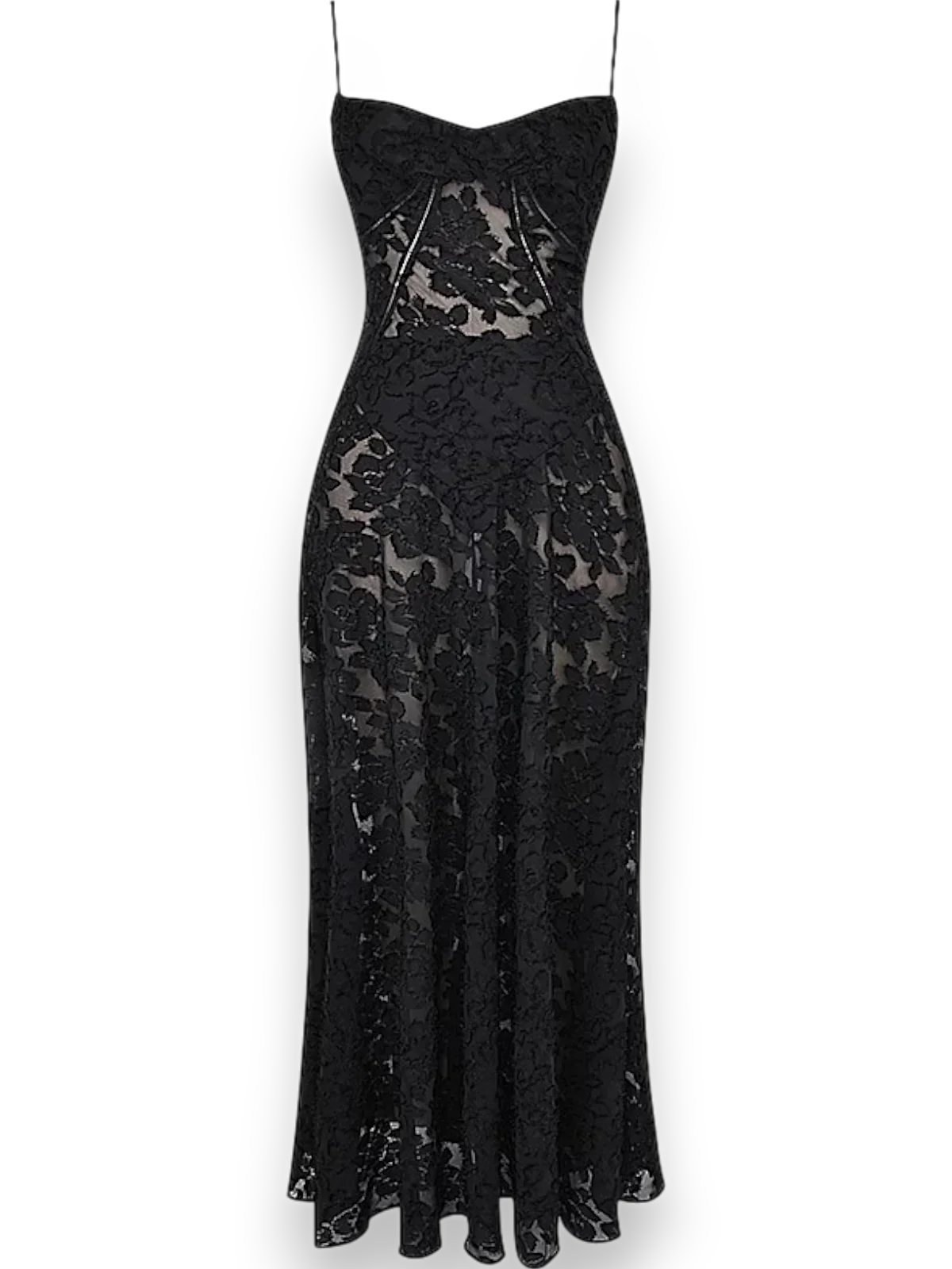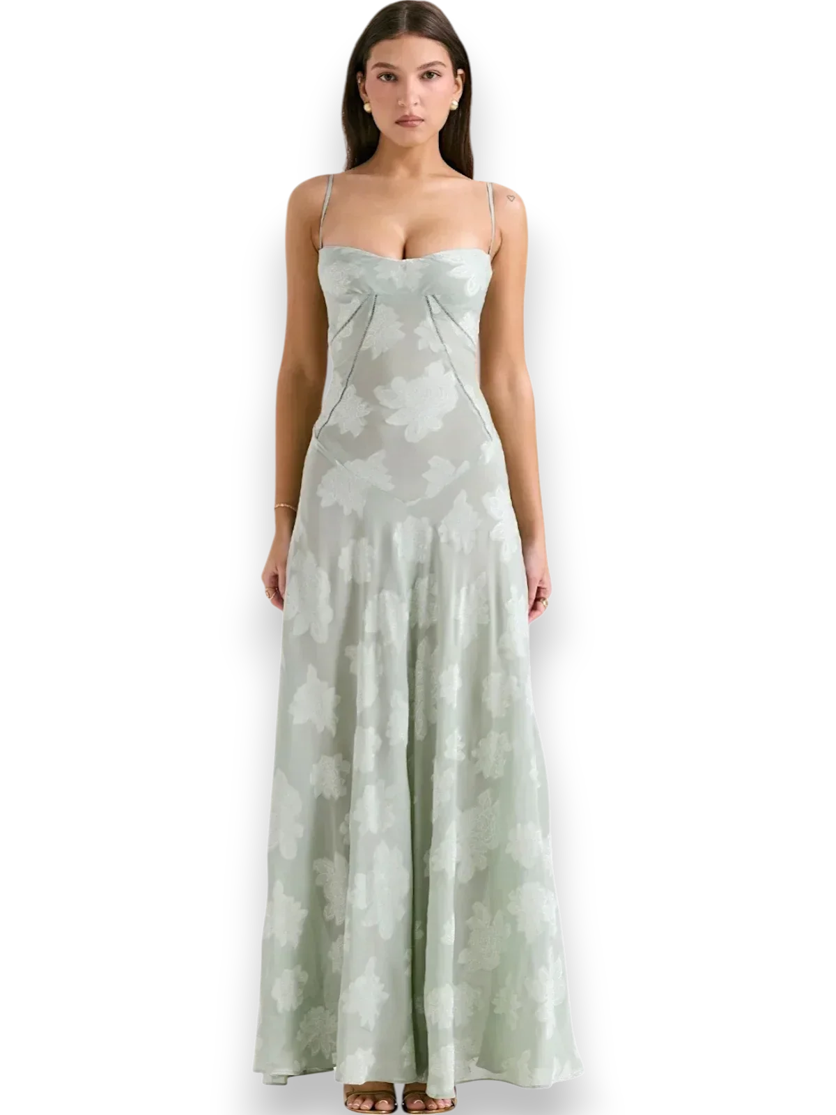 Descubre la elegancia atemporal con este vestido largo de tirantes finos. Diseñado para realzar cada silueta, está adornado con delicados bordados florales, perfectos para todas las ocasiones especiales. Sumérgete en un universo de sofisticación y déjate cautivar por su encanto fascinante.