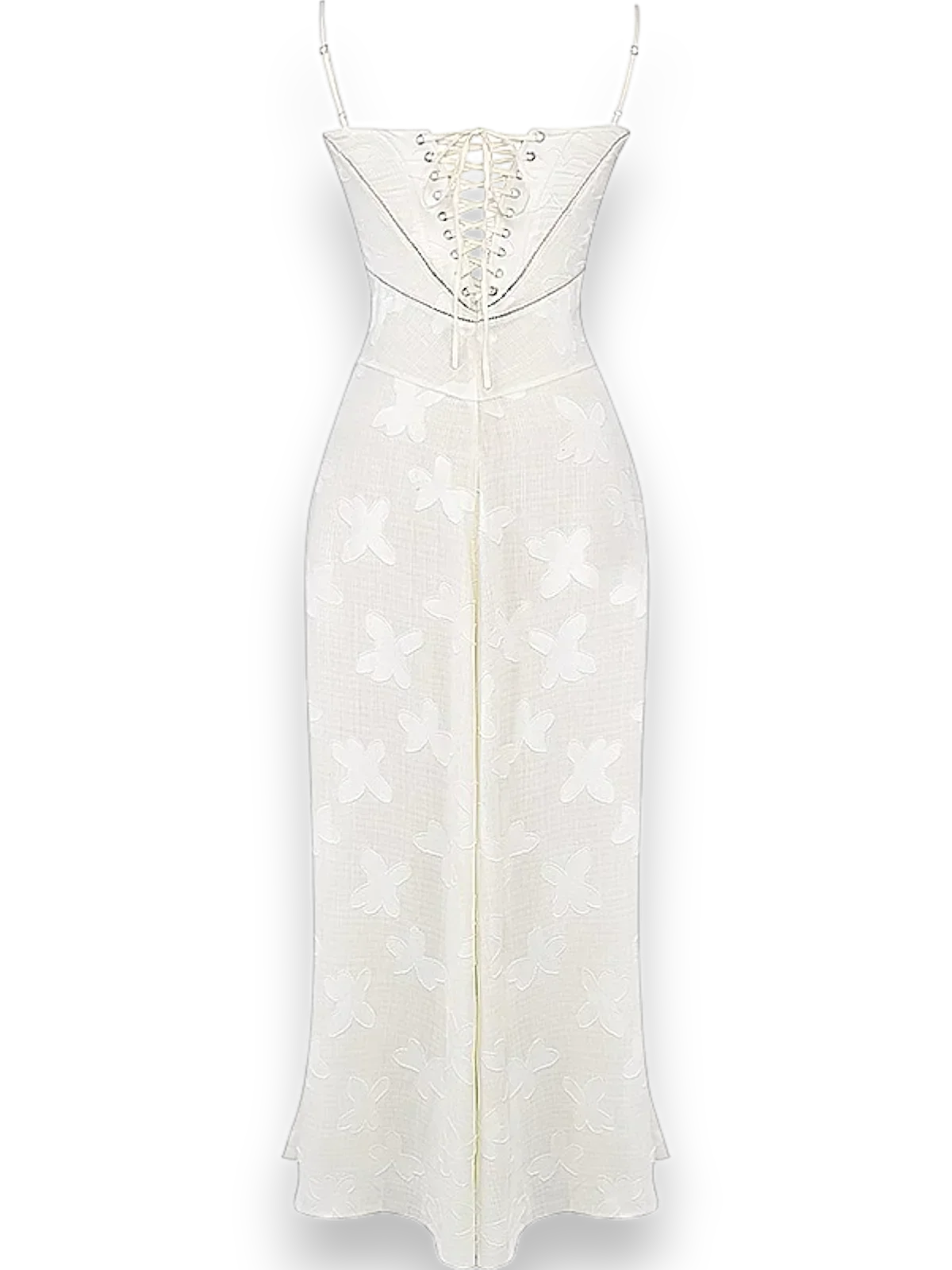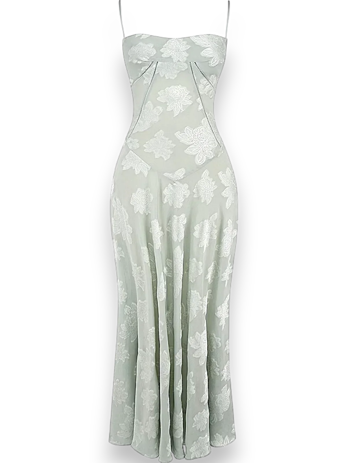 Robe longue en tissu léger avec broderie florale délicate et bretelles fines pour un style élégant et féminin.