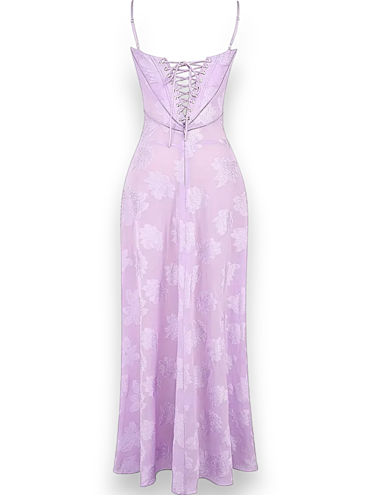 Robe longue violette en coton, broderie florale délicate, bretelles fines et coupe fluide idéale pour l&